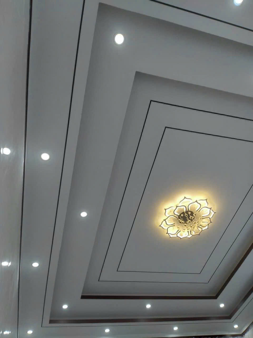 Trần thạch cao Bình Phước giá rẻ có thể tạo nhiều kiểu dáng như trần phẳng, trần giật cấp, kết hợp đèn LED tạo điểm nhấn sang trọng.